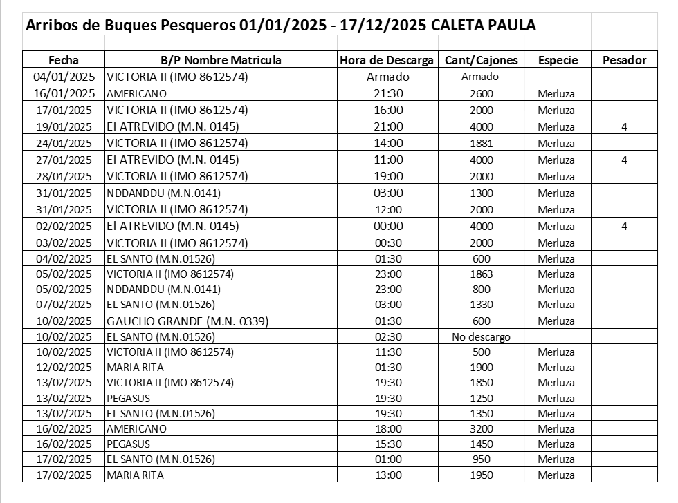 También cabe destacar que, desde el 4 de enero de 2025 hasta la fecha, se descargaron 31 embarcaciones con un total de 56.046 cajones y se cargaron 81 camiones, los cuales transportaron 1.962 toneladas de Merluza Hubbsi.