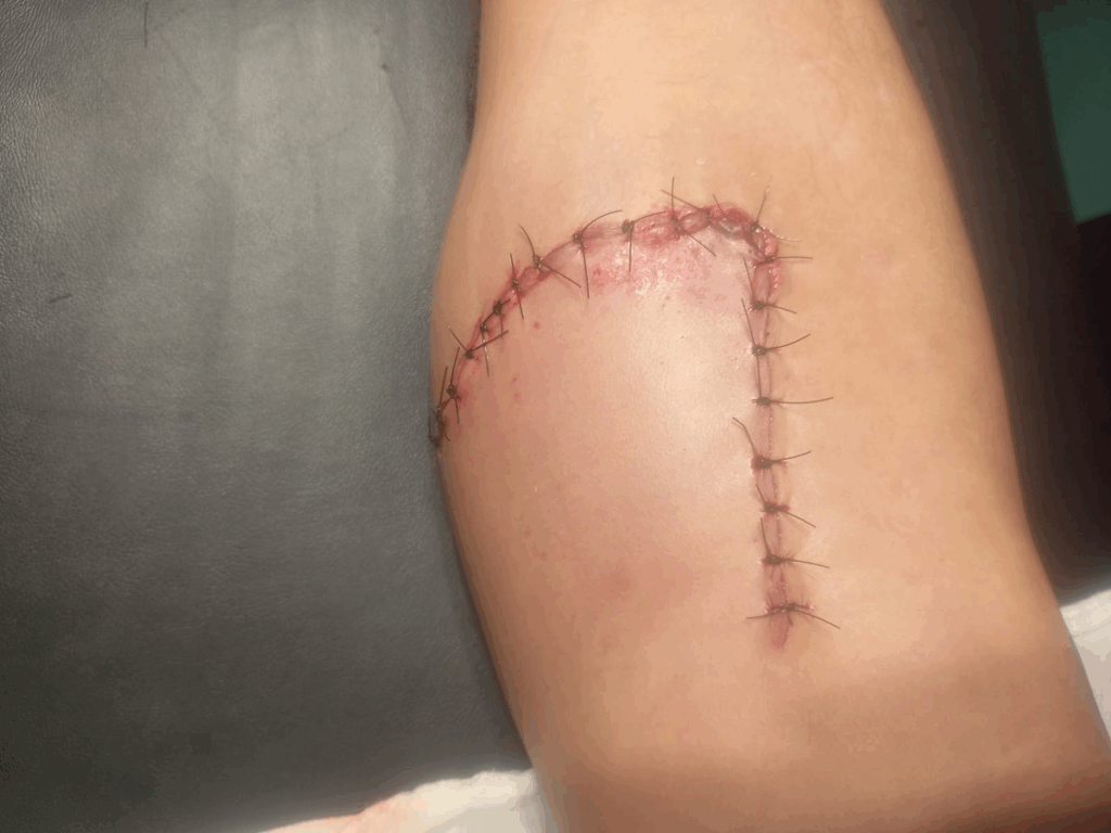 - Herida cortante profunda en miembro inferior con sutura de más de 20 puntos