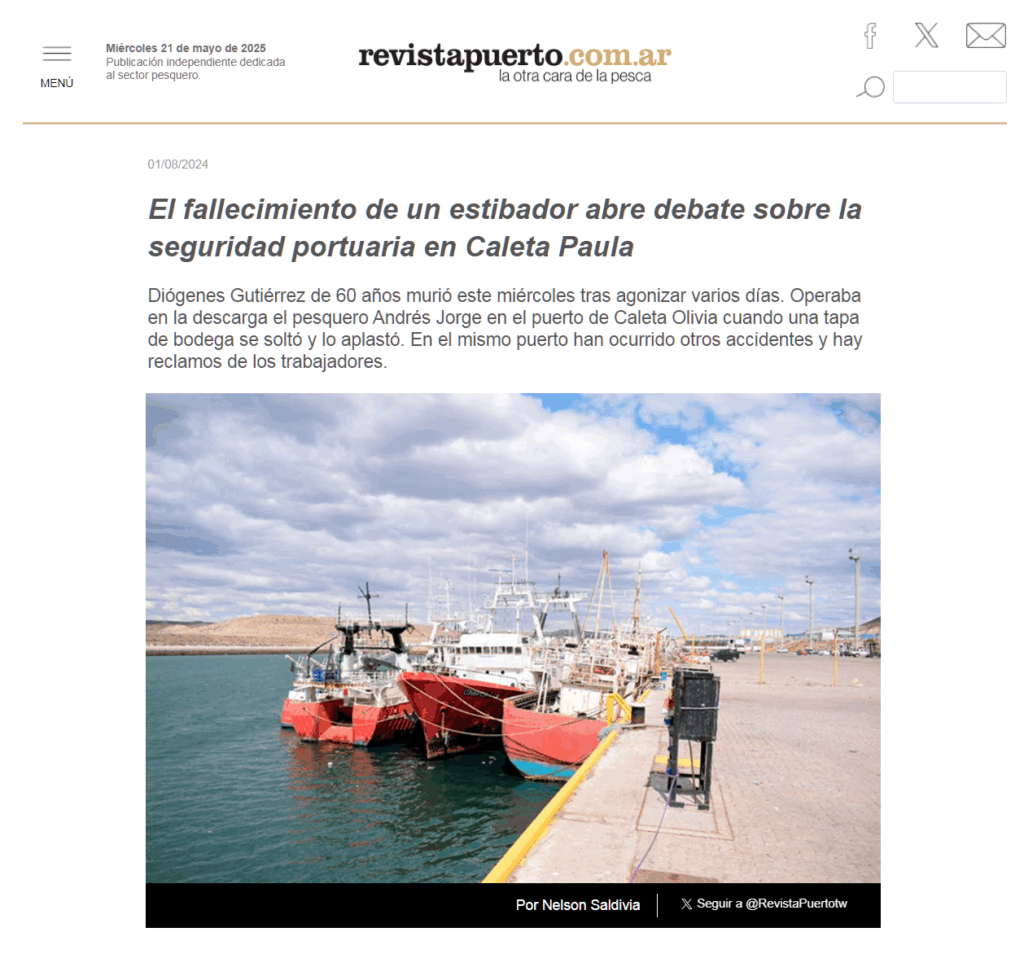 Caleta Olivia – mayo de 2025. Santiago Videla, legítimo delegado de los trabajadores portuarios jornaleros del Puerto Caleta Paula, denunció públicamente un nuevo intento de usurpación gremial promovido por el gobierno provincial de Claudio Vidal, en complicidad con la Federación de Estibadores Portuarios Argentinos (FEPA), que conduce Marcelo F. Osores.
