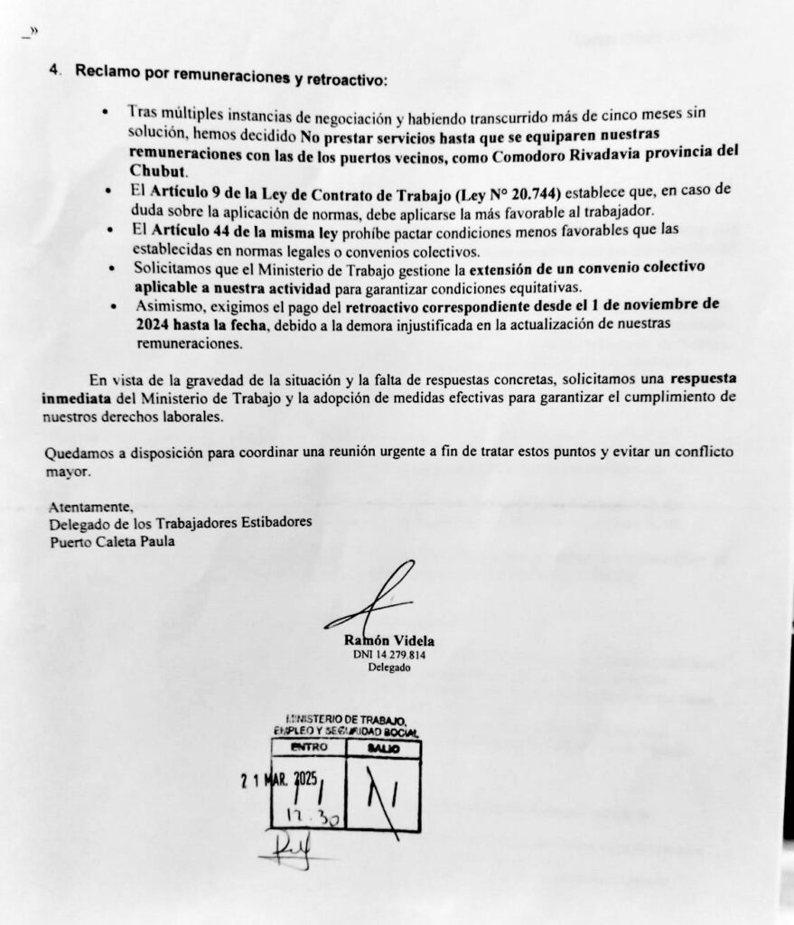 ULTIMÁTUM Situación de los Estibadores del Puerto Caleta Paula: Siguen las Irregularidades y Amenazas en el Ministerio de Trabajo.